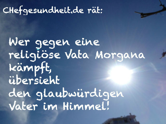 der gerade seine 3. Ehefrau verabschiedete.Sie denken, er hätte mich wütend rausgeschmissen plus Beschwerde an den Superintendenten?Von wegen, er gab mir erstaunlicherweise die Erlaubnis dazu.Nach dem Erzählen des "Witzes" brach ein tiefer Seufzer aus ihm heraus:Das wäre schön!Seit diesem eindrücklichen Erlebnis glaube ich "A-Theisten" nur noch ihren Kampf,aber nicht mehr ihren "Glauben".Gott Fresser