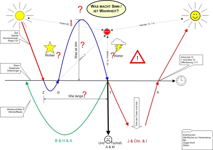Sie zeigt die mögl!CHen Lebens- und Glaubenswege,auf denen ALLE Menschen zwischen Zeugung und Tod unterwegs sind:Blau ist der s!CHtbare Teil unserer ER Fahrung.